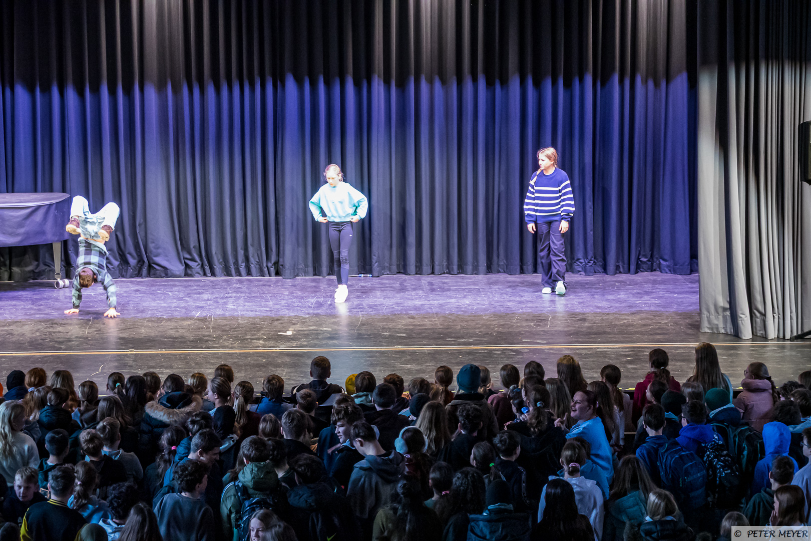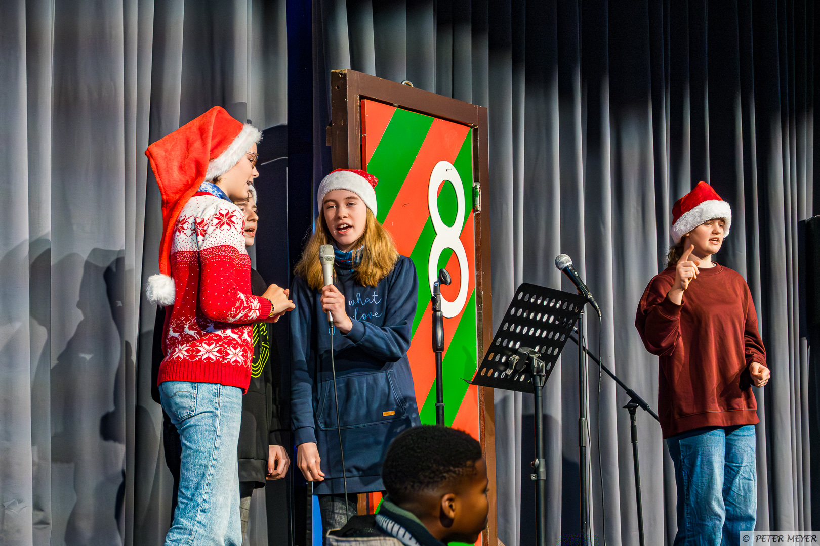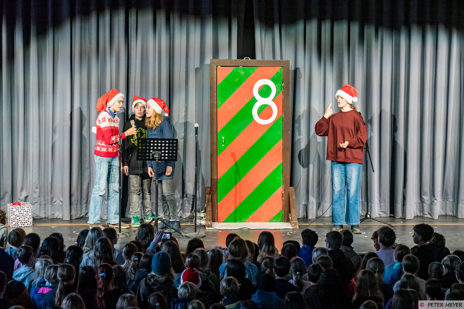 Anschließend tanzte Charlotte Manlik aus der 5a zu dem Klassiker „All I want for Christmas“ auf der großen Bühne. Das Publikum war sowohl von den Darbietungen als auch von dem Mut der vier SchülerInnen begeistert.