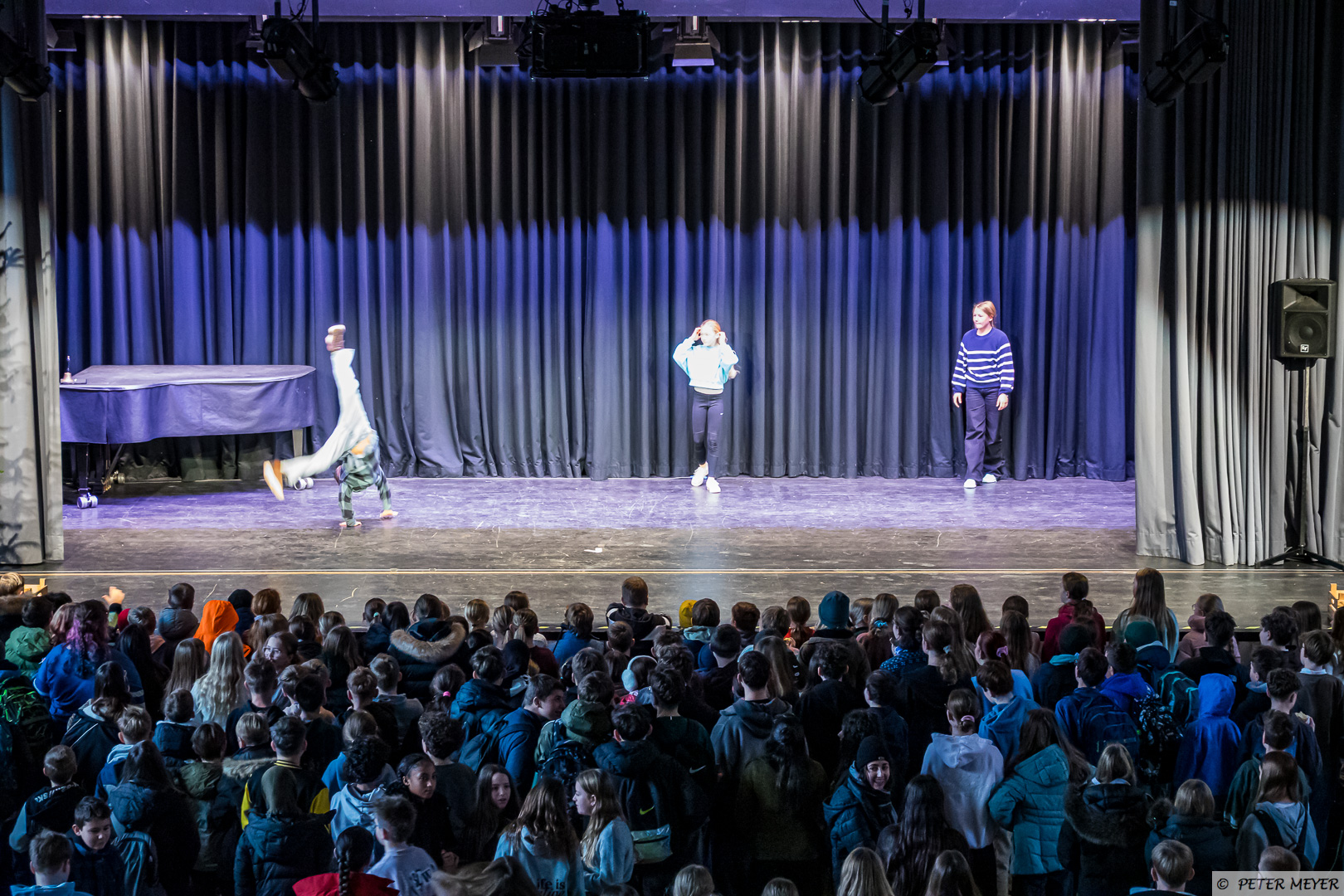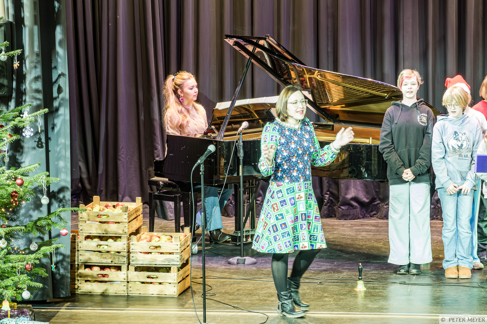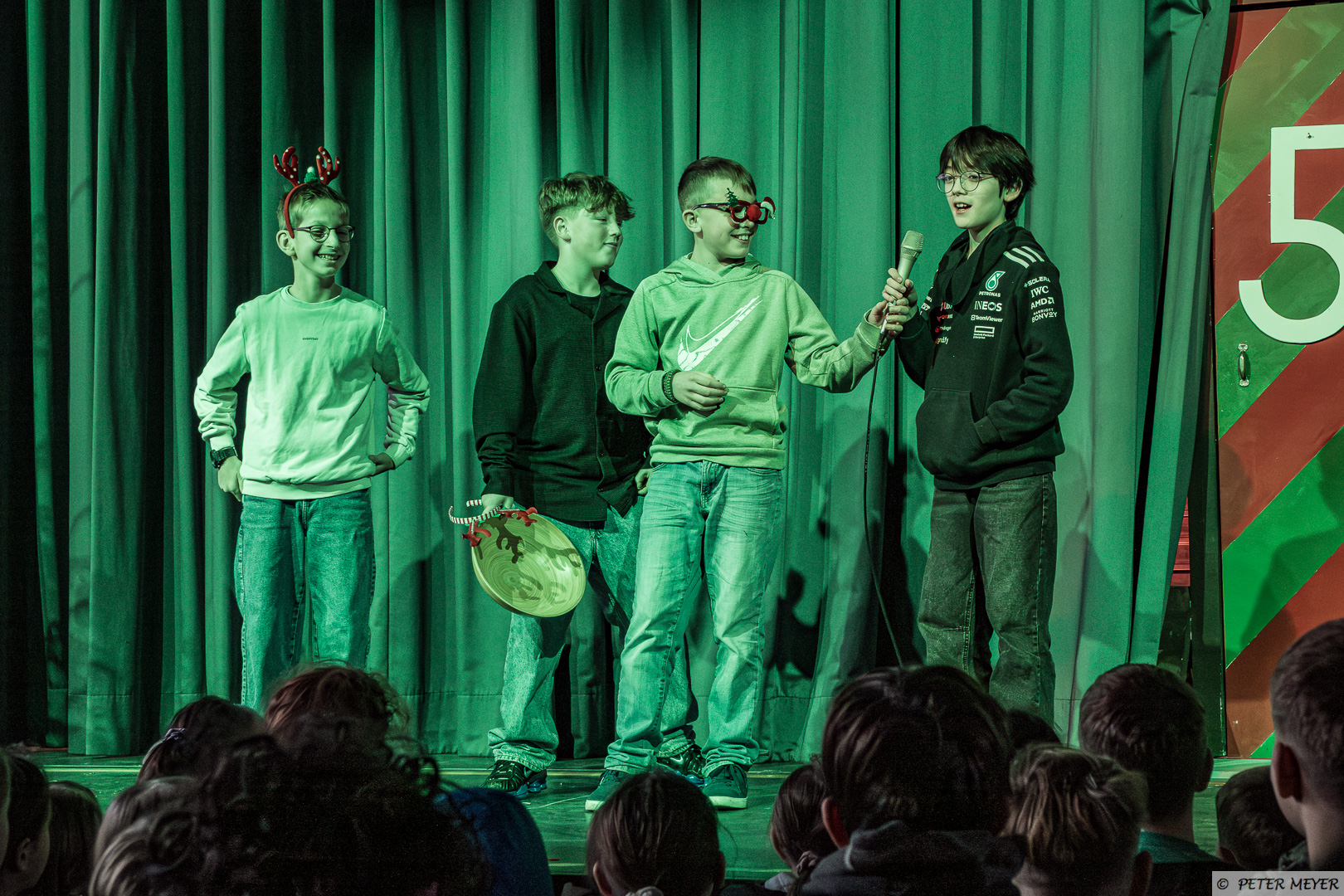 Anschließend tanzte Charlotte Manlik aus der 5a zu dem Klassiker „All I want for Christmas“ auf der großen Bühne. Das Publikum war sowohl von den Darbietungen als auch von dem Mut der vier SchülerInnen begeistert.