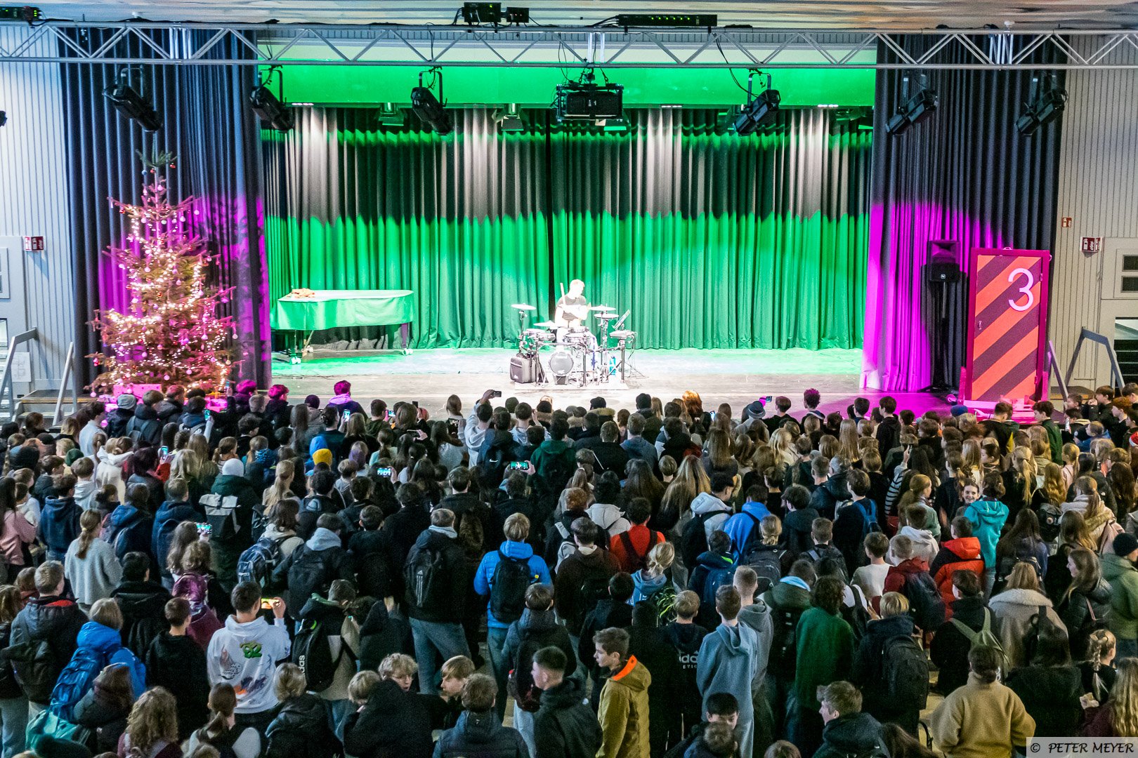 Mit dem Klassiker „Highway to Hell” heizte er dem Publikum ordentlich ein, bevor er mit Nirvana weitermachte. Der absolute Höhepunkt war jedoch die Coverversion von Taylor Swifts‘ „Ophelia”, hier hielt das Publikum mit dem Pegel des Schlagzeugs locker mit, bevor er mit „An Tagen wie diesen“ seine Performance beendete. Wie ein echter Rockstar verteilte Herr Monzel sogar seine Drumsticks an die begeisterten Schüler*innen.