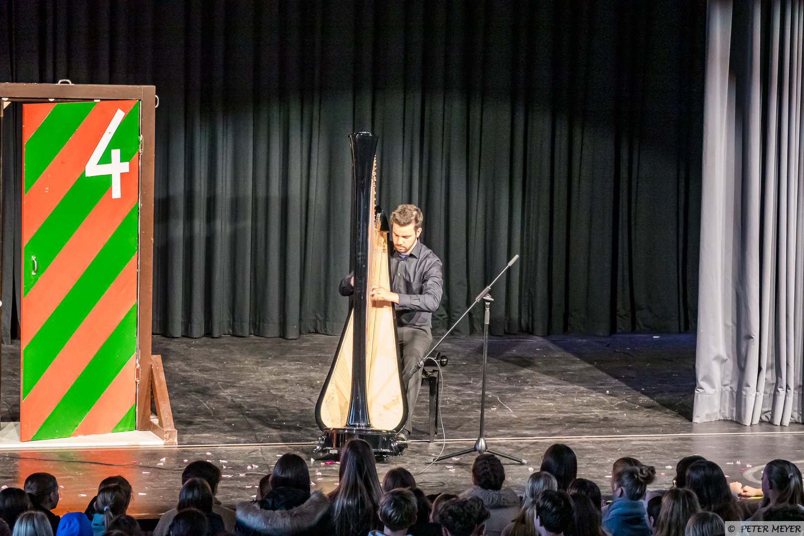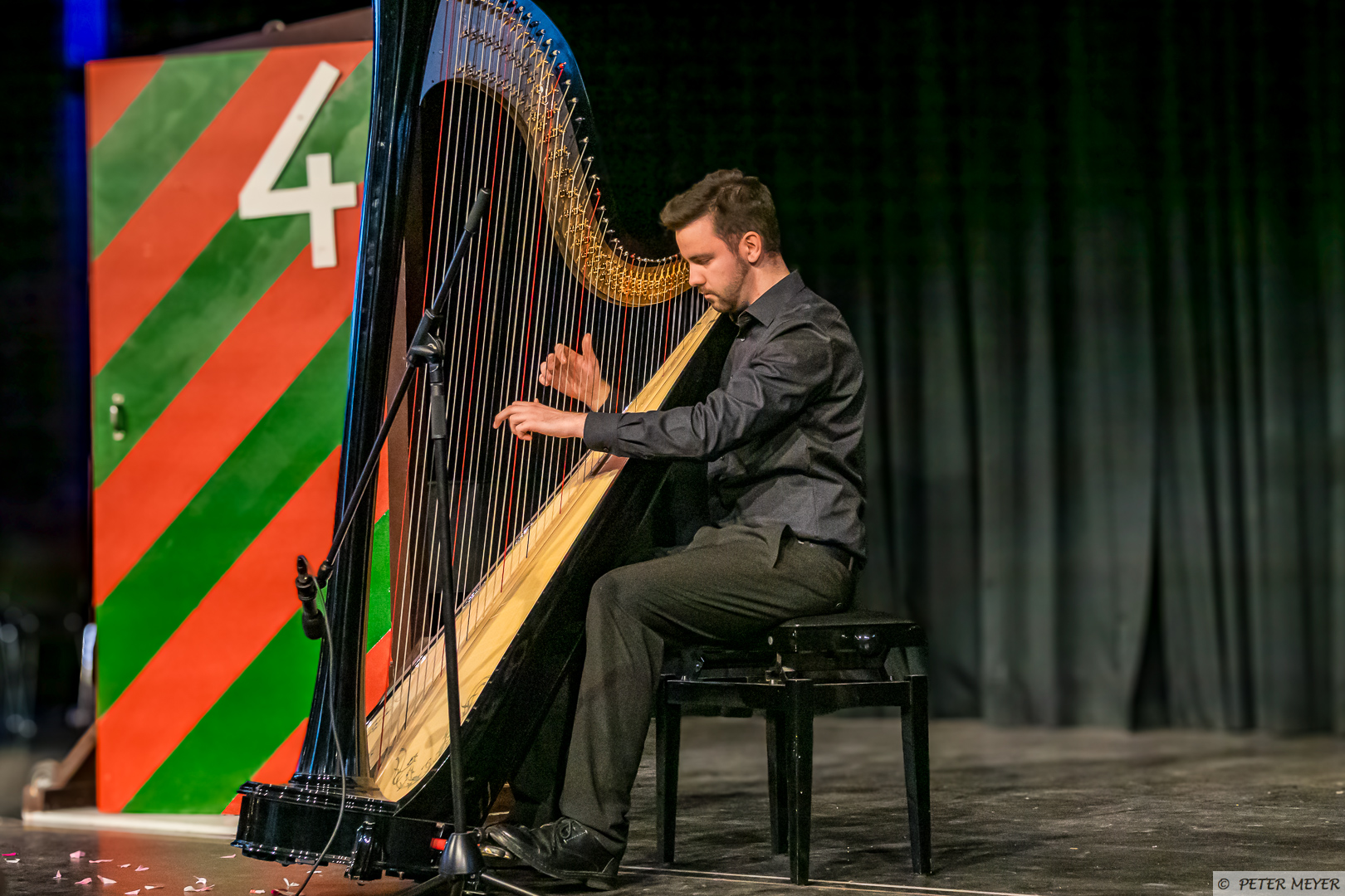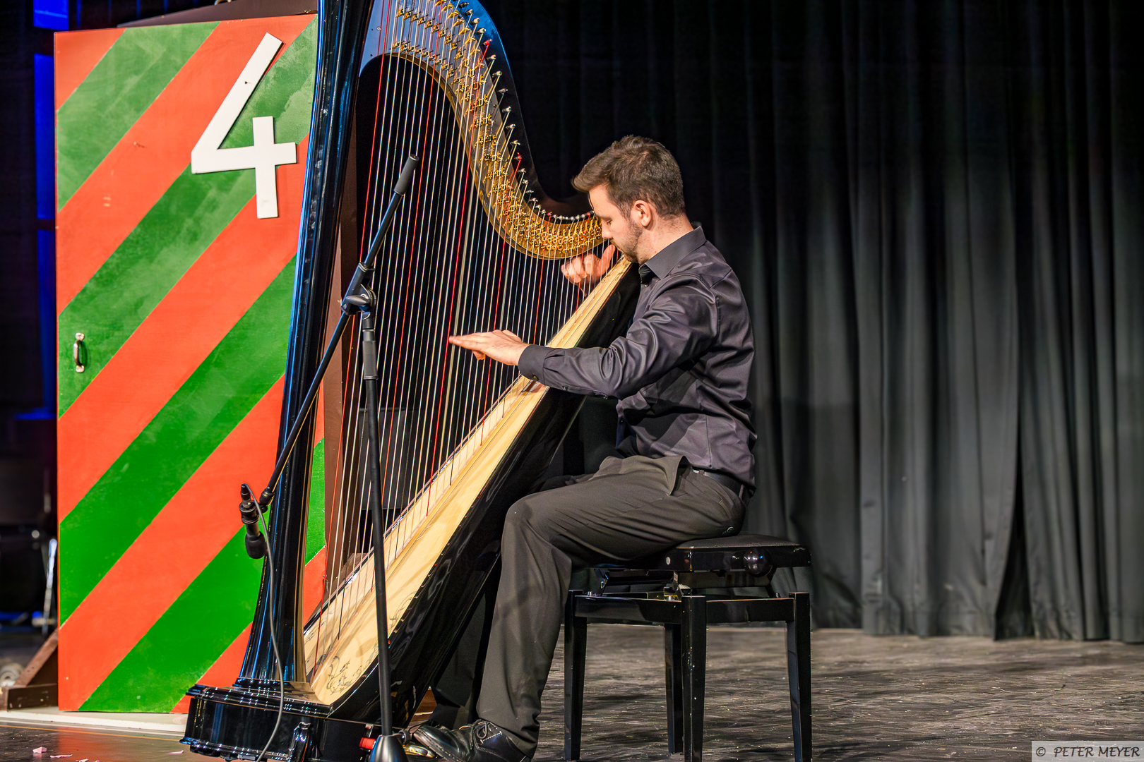 Anschließend bezauberte Silvan Buzalkovski mit Harfenklängen und spielte u.a. „Das Leben der Amélie” und „Etude de concert: Au Matin“.