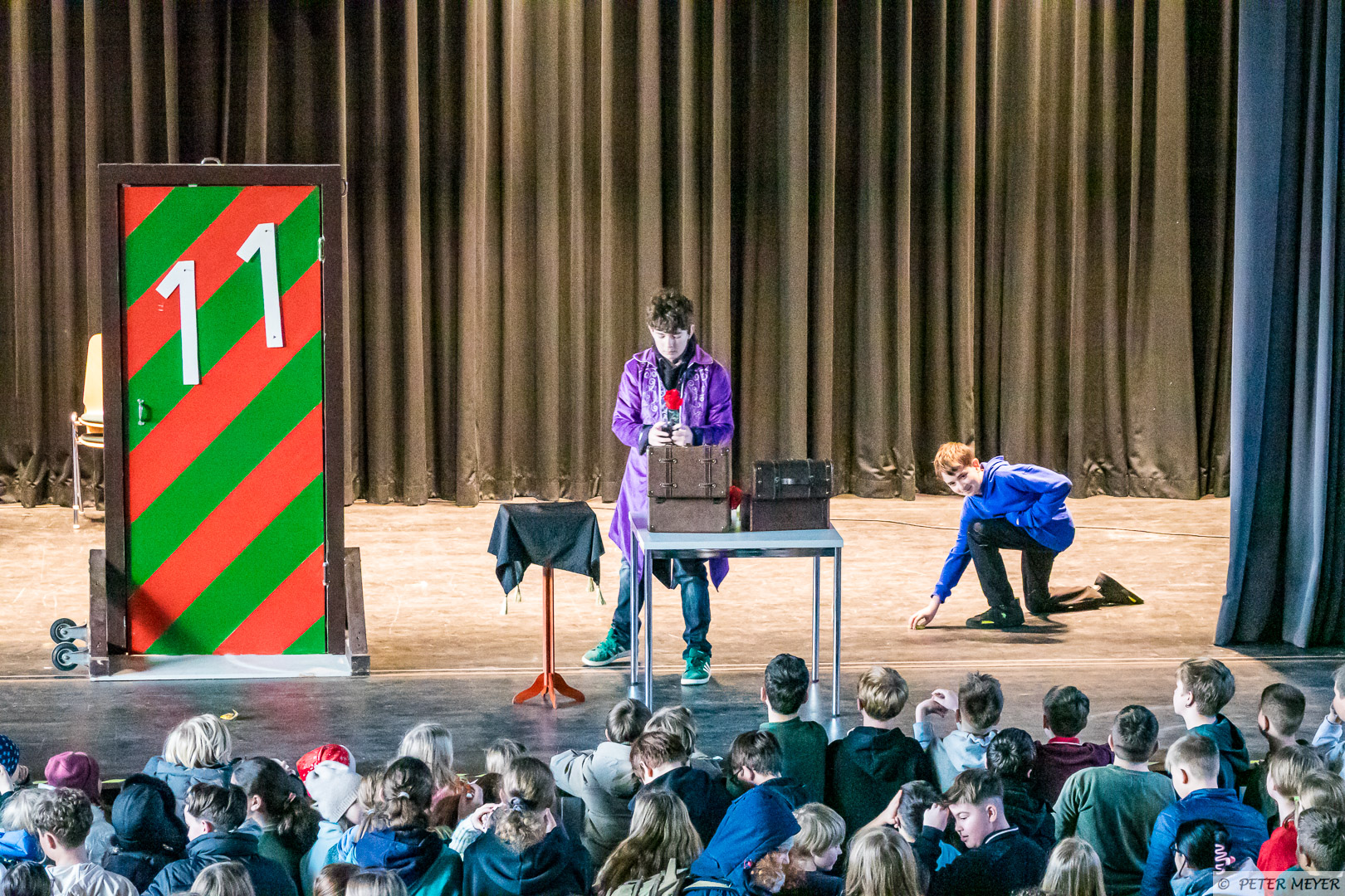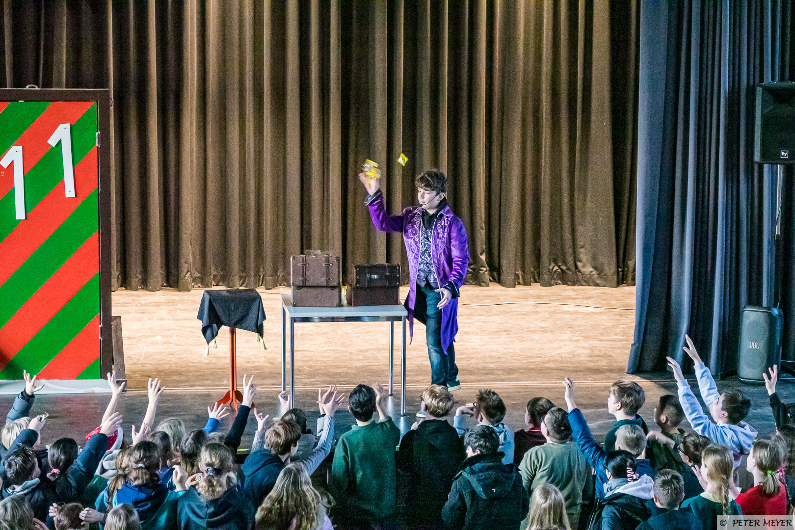 Zunächste zeigte Jan der Schule seine hohen Flachwitzkünste und sorgte für viele Lacher, bevor Sam mit seiner Zaubershow viele magische Momente erzeugte.