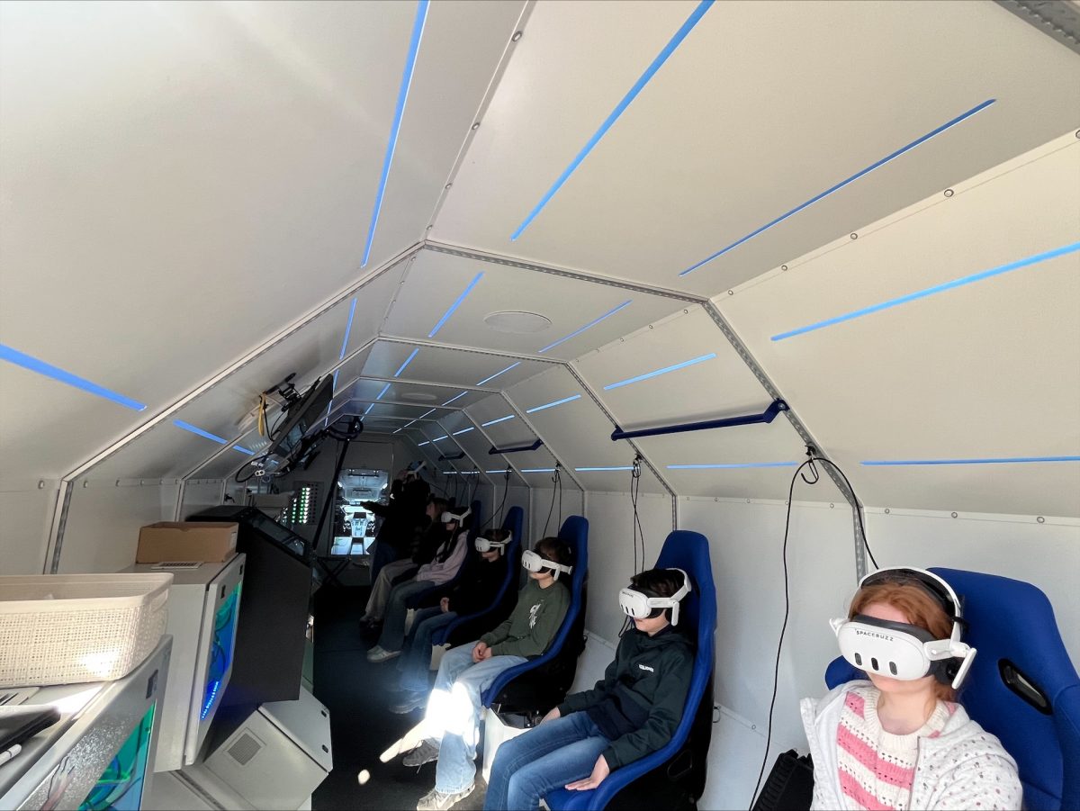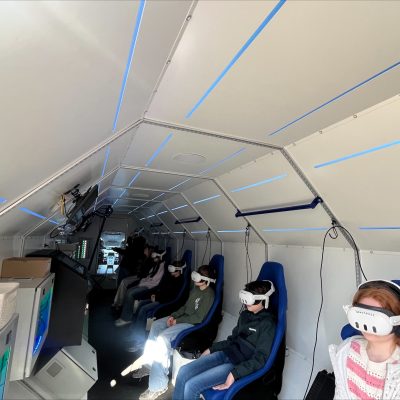 Schon von außen sorgte die große Raketen-Nachbildung auf einem LKW für Begeisterung. Neugierig versammelten sich viele Schülerinnen und Schüler auf dem Schulhof und warteten gespannt darauf, selbst an Bord gehen zu dürfen. In kleinen Gruppen betraten sie die Rakete und nahmen auf speziell eingerichteten Sitzen Platz. Nachdem sie Virtual-Reality-Brillen aufgesetzt hatten, begann ihre Reise ins All.