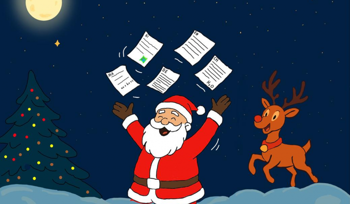 Liebe Schüler*innen, liebe Kolleg*innen, liebe Eltern, liebe Freunde und Mitarbeiter*innen unserer kooperierenden Schulen und Partner, sehr geehrte Damen und Herren, mit diesem fröhlichen Weihnachtsmann, entworfen und zeichnerisch umgesetzt von Kenji . . .